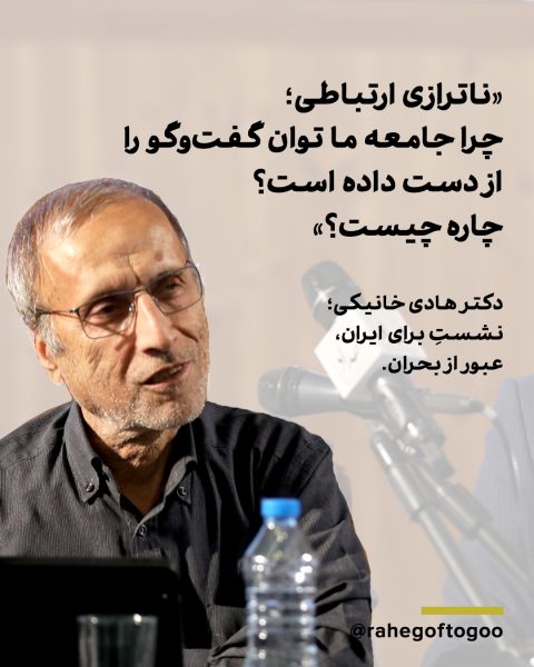 دکتر «هادی خانیکی» استاد ارتباطات با تشریح وضعیت «ترومایی» جامعه و «گسیختگی اجتماعی»، «ناترازی ارتباطی» را موتور محرک این بحران دانست و راه خروج را در ساختن «میدان گفتوگو» و احیای «مای جمعی ایرانی» معرفی کرد. این نشست، تلاشی منسجم برای عبور از انکار بحران و ارائه راهکارهای بنیادین بود. دکتر هادی خانیکی استاد ارتباطات دانشگاه علامه طباطبایی با یادآوری عنوان نشست «برای ایران، عبور از بحران» و هدف آن مبنی بر ارائه ایدههایی برای مواجهه با شرایط موجود تأکید کرد: مسئولیت اجتماعی دانشگاه، اندیشمندان و کنشگران مدنی آن است که در کنار یکدیگر جامعه را به اندیشیدن در شرایط بحرانی دعوت کنند. یکی از ویژگیهای شرایط بحرانی این است که همه چیز را جابهجا میکند. جامعهای که در معرض بحران پیچیده قرار میگیرد اولین مسالهاش این است که چگونه و درباره چه چیزی باید بیندیشد زیرا مساله آنقدر مبهم است که حتی خودمان هم نمیدانیم چگونه باید عمل کنیم.